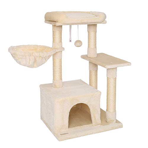 lionto Arbre à Chat avec Balle en Peluche et hamac, Hauteur 85 cm, Arbre avec sisal et Peluche, Surface de Repos et Niche Confortables, Fixation Murale Incluse, pour Petits et Grands Chats, Beige