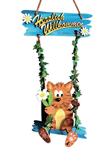 Bastel petra'news-s, a-bA32KZ34HW Petra-Peluche Chat sur balançoire «Bienvenue»