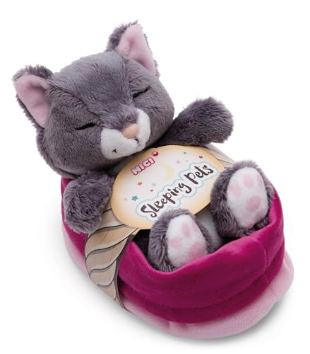 NICI Chat en Peluche dans Son Panier Rose-Violet 16 cm - Sleeping Kitties Peluches Chatons douillettes pour Filles, garçons et bébés - Doudous Chats pour Jouer, à câliner et Dormir
