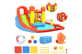 Château Gonflable avec Toboggan Jardin Extérieur Arrière-cour Enfants Kit de Réparation Sac de Transport 210x280x170 cm PVC