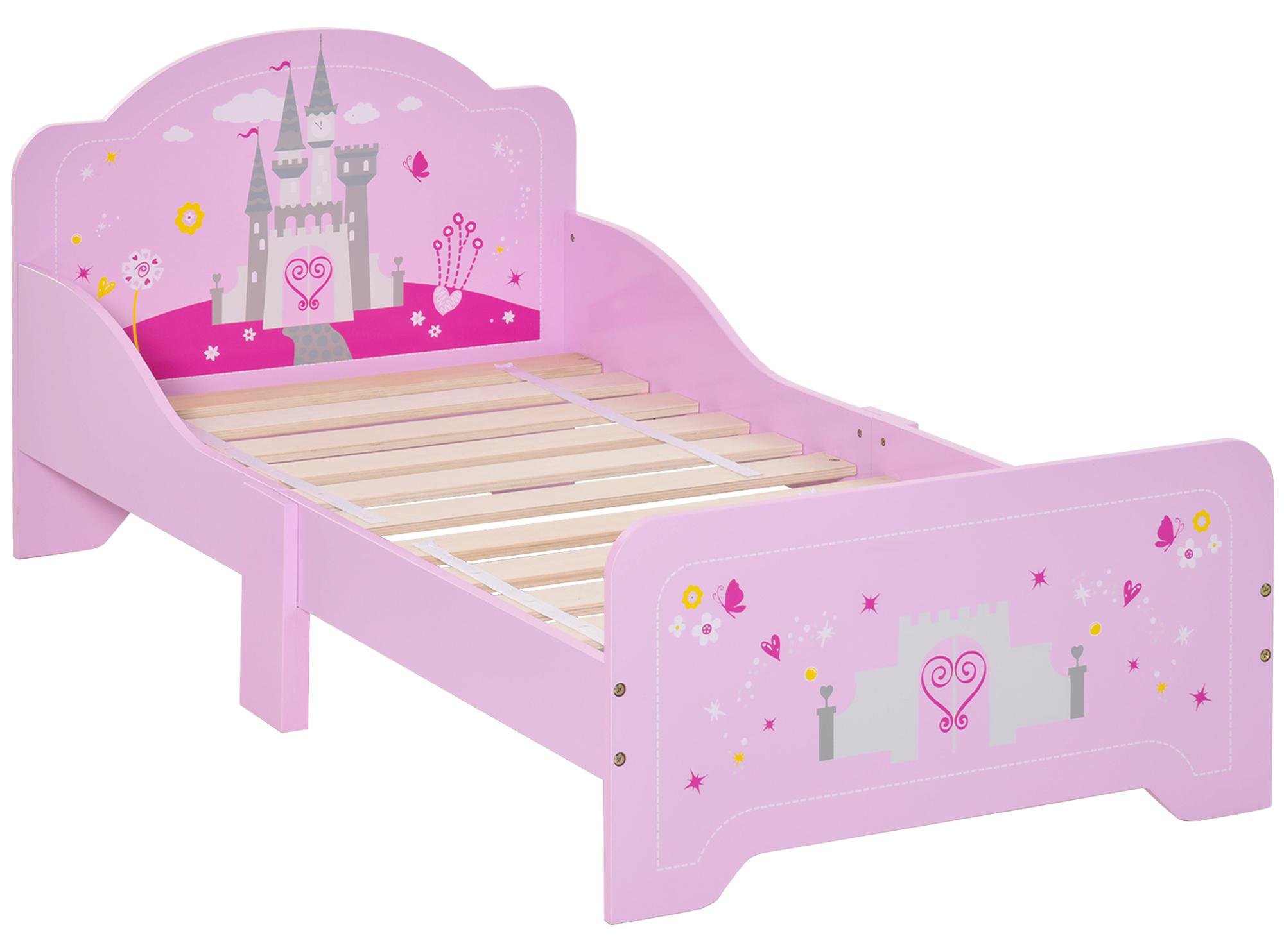 Homcom Lit d'enfant design princesse motif château - sommier à lattes inclus MDF contre-plaqué rose