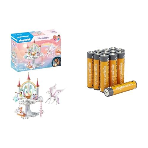 Playmobil Château Arc-en-Ciel, lumière/Accessoires, 4+ Ans, & Piles AAA Alcalines Amazon Basics 12 pcs, 10 Ans