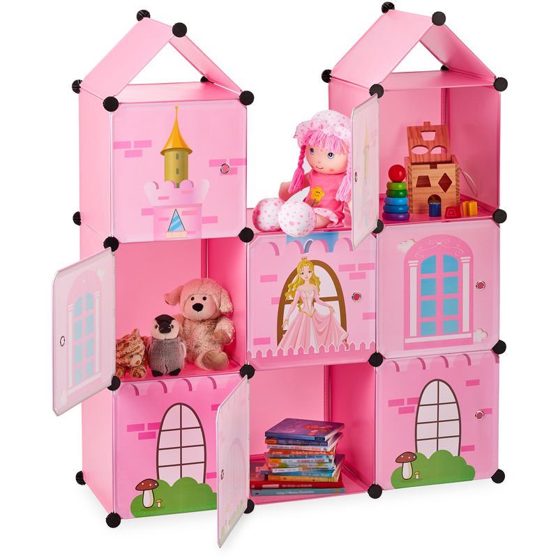 Etagère emboîtable chambre d'enfants,Château de princesse, Plastique, Armoire diy avec portes, HlP128x110x37cm - Relaxdays