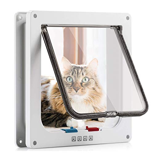 Moaobooh Chatière pour chat - 4 voies de verrouillage - Porte pour animal de compagnie - Chatière pour chien/chat avec tunnel