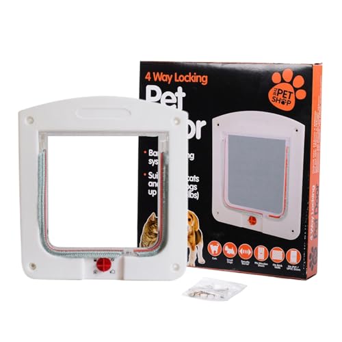 Chatière pour chat avec serrure 4 voies 22 x 20 x 3 cm porte de sécurité facile à installer pour animaux de compagnie intérieure et extérieure, fenêtre, mur (blanc)