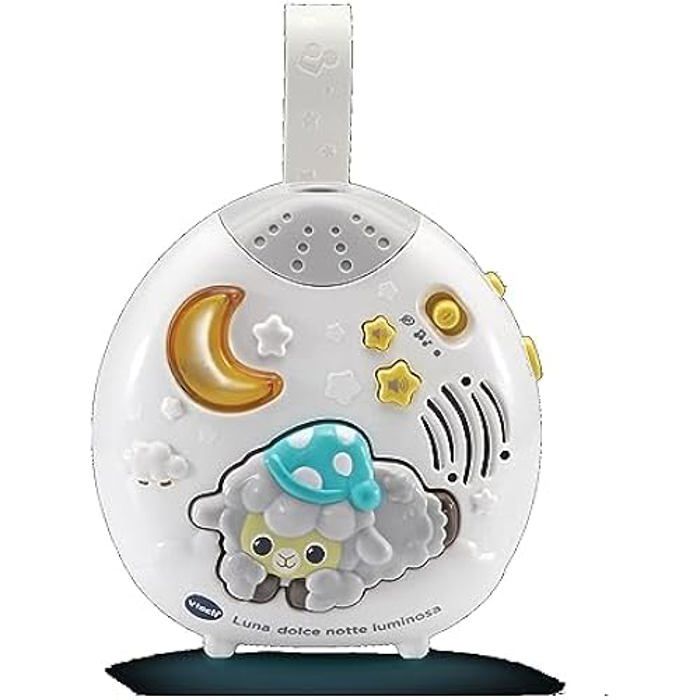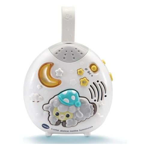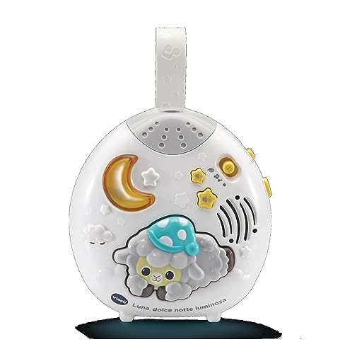 VTech Lune, Douce Nuit Lumineuse, lumière de Nuit pour Enfants, lumière Musicale avec 40 mélodies et 2 chansons, Mode Berceau et Sons de la Nature, Langue Italienne, Piles incluses, 0-36 Mois