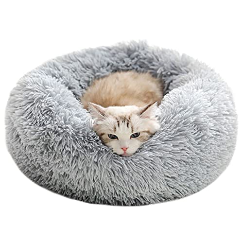 Panier Chat Chien Lit Rond pour Chats Chiens Peluche Coussin pour Animaux de Compagnie Moelleux Paniers Donut pour Chat Petit Chien Moyen (60CM, Gris Clair)
