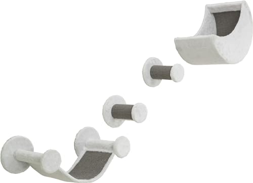 TRIXIE Set Mural pour Chats en Peluche, 4 pièces, Blanc/Gris, Plate-Forme d'observation pour Chats pour Montage Mural
