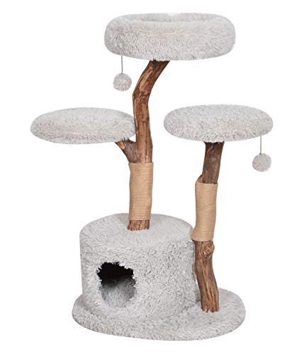 Dehner Arbre à Chat Lovely - Monter et éteindre - pour Grands et Petits Chats - Bois, Peluche, sisal - Stable, Moderne - Gris Clair - Environ 110 x 60 x 45 cm