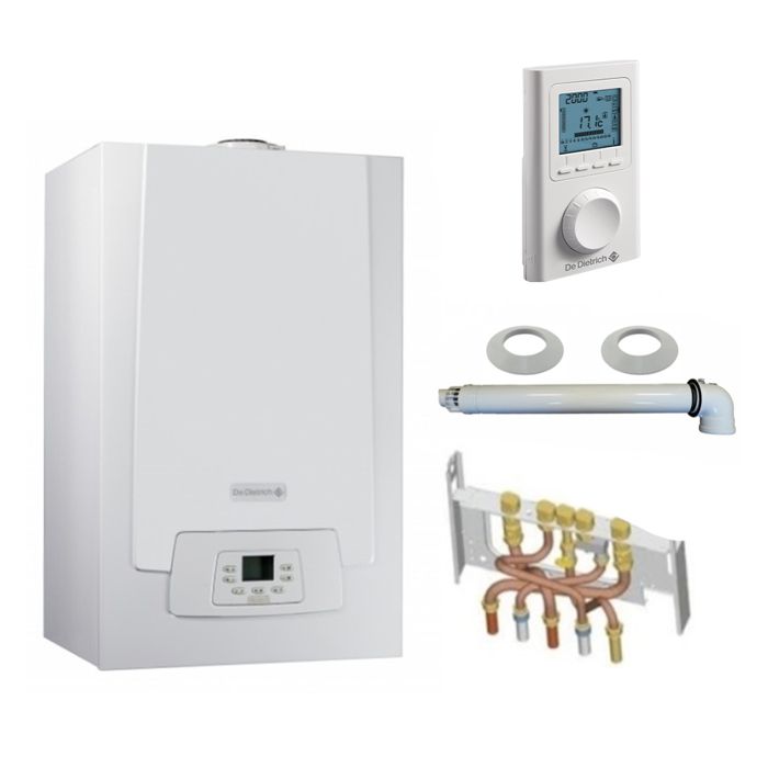 Chaudière Gaz Condensation MPX MI Slim De Dietrich 29 kW Complète (DOSSERET + DOUILLES + VENTOUSE) avec thermostat filaire