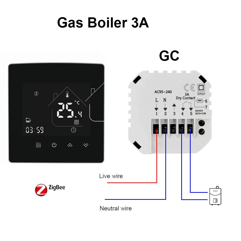Chauffage au sol électrique Thermostat d'ambiance Chaudière à gaz à eau Smart WiFi Thermorégulateur intérieur Fonctionne avec Google Smart Life ZigBee-3A-Gas Boiler