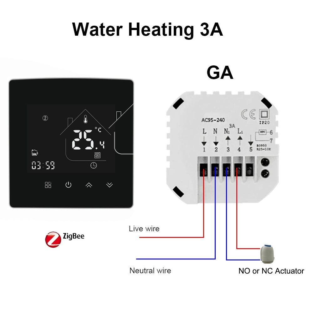 Chauffage au sol électrique Thermostat d'ambiance Chaudière à eau à gaz Smart WiFi Thermorégulateur intérieur Fonctionne avec Google Smart Life, ZigBee-3A-Water Heating