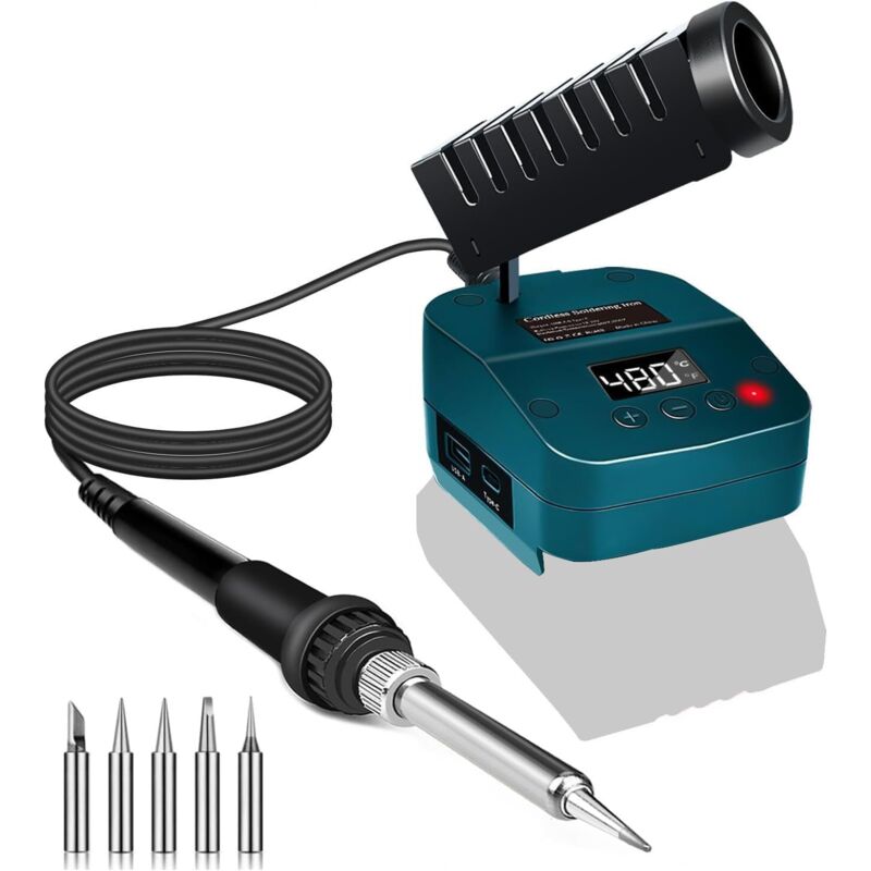 Fer à souder sans fil pour batterie Bosch 18 V, chauffage rapide, station de soudage numérique LCD électrique avec ports de charge USB et de type C,
