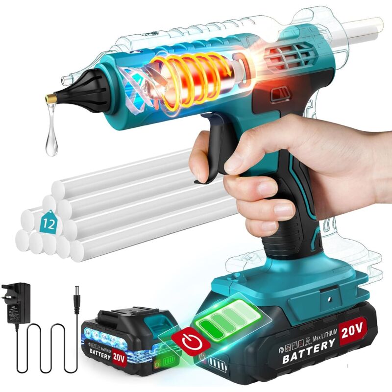 Pistolet à Colle 100W Sans Fil Compatible pour 20V max Batterie, Pistolet à Colle à Chauffage Rapide Avec 20 Bâtons de Colle pcs pour le Bricolage