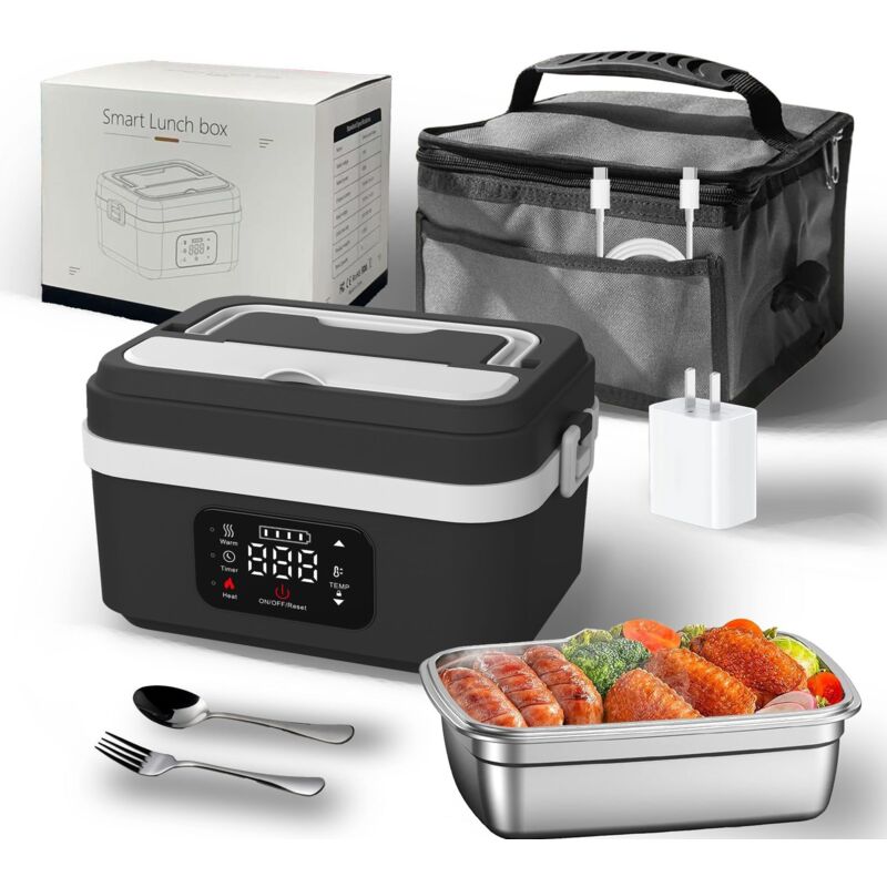 Boîte à Repas Chauffante Électrique 1L avec Batterie 14000mAh - Boîte Repas Isotherme USB avec Chauffage Automatique, Contenant Inox 304, Idéale