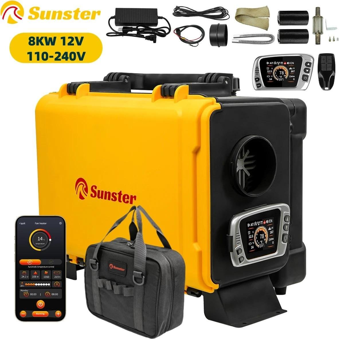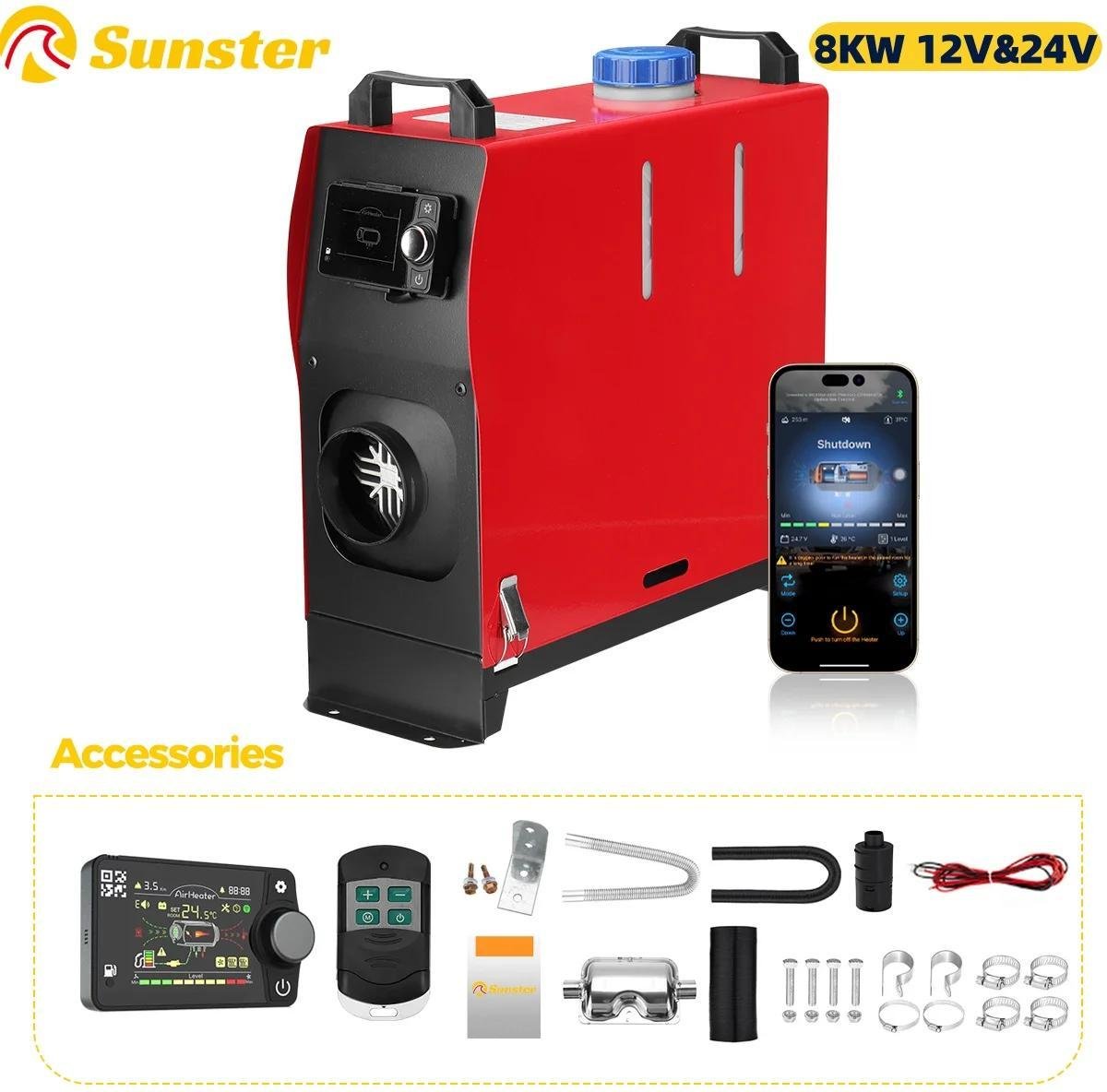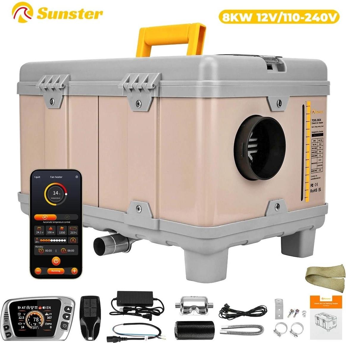 Réchauffeur d'air Diesel Portable 8KW 12V 220V, avec application Bluetooth, Thermostat automatique, chauffage de stationnement de voiture pour camping-car, tente, Garage, maison