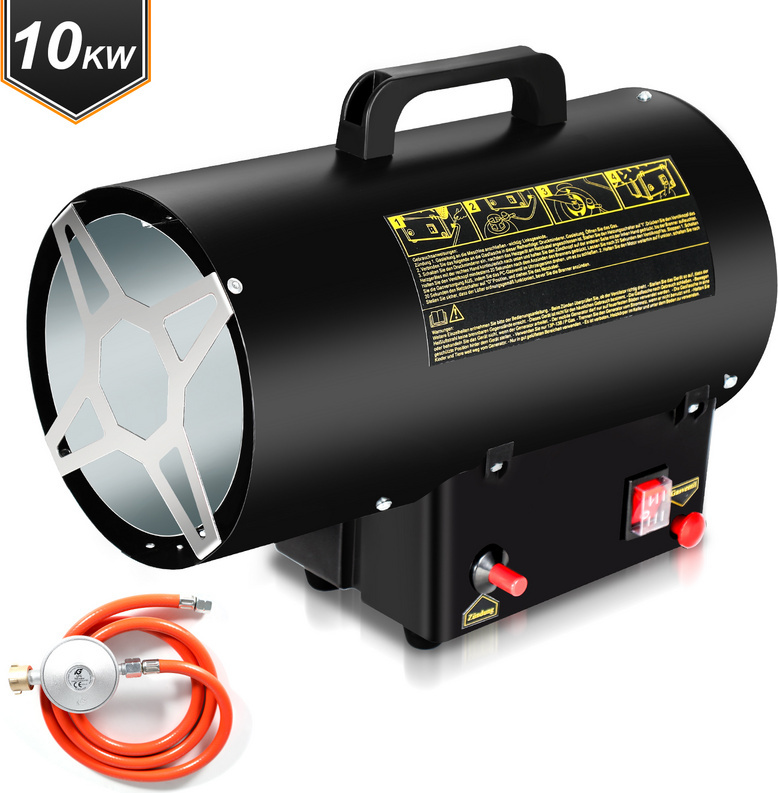 Jayseuw Gas Heizbläse 10 kW Direct, canon à chaleur gaz, débit d'air 320 m³/h, chauffage à gaz avec tuyau, détendeur, pour bouteille de propane/butane