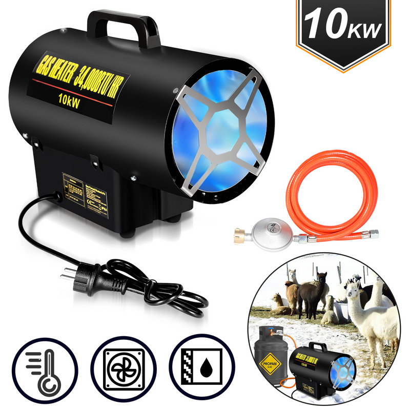 Jiubiaz 10KW Chauffe-gaz pour bouteille de gaz Régulateur de pression de gaz Chauffe-bâtiment 700mbar Chauffe-gaz Canon de chauffage