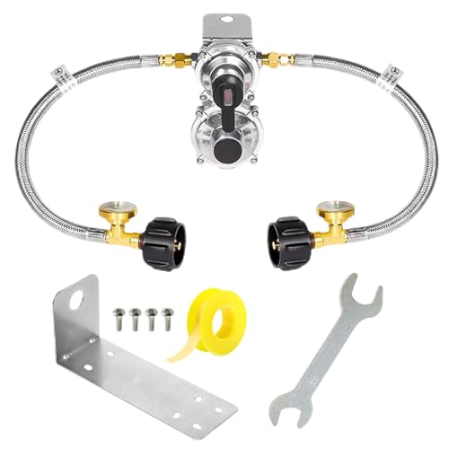 Régulateur de propane pour remorque - Adaptateur de réservoir de camping-car à double étage, changement automatique de gaz avec tuyau 18 pouces, pièce de rechange pour cuisson et chauffage avec