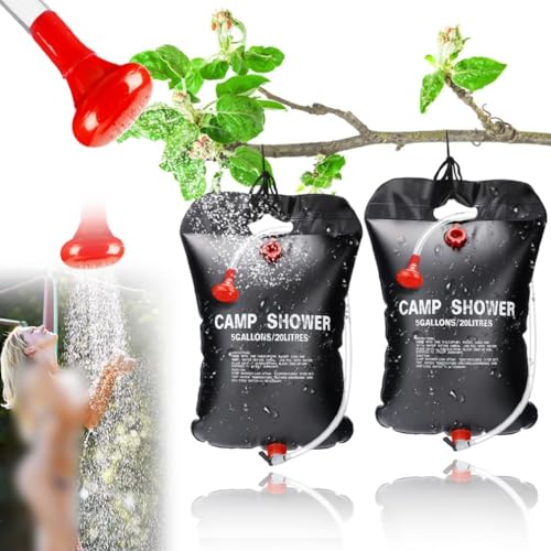 Yuragim Lot de 2 douches solaires de camping de 20 l - Sac de douche solaire d'extérieur avec pommeau de douche et corde - Chauffage solaire portable - Sac de douche de voyage pour l'extérieur, le