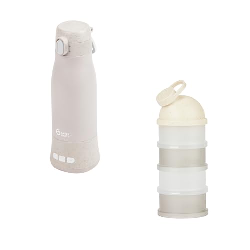 Babymoov Chauffe-Biberon Nomade sans Fil Moov & Feed & Boites de Lait en Poudre Babydose Beige - Capacité 340ml - Eau ou Lait Maternel - Température réglable - Maintien au Chaud (jusqu'à 7h)