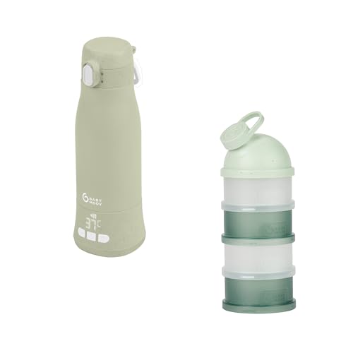 Babymoov Chauffe-Biberon Nomade sans Fil Moov & Feed Vert & Boites de Lait en Poudre Babydose Vert - Capacité 340ml - Eau ou Lait Maternel - Température réglable - Maintien au Chaud (jusqu'à 7h)