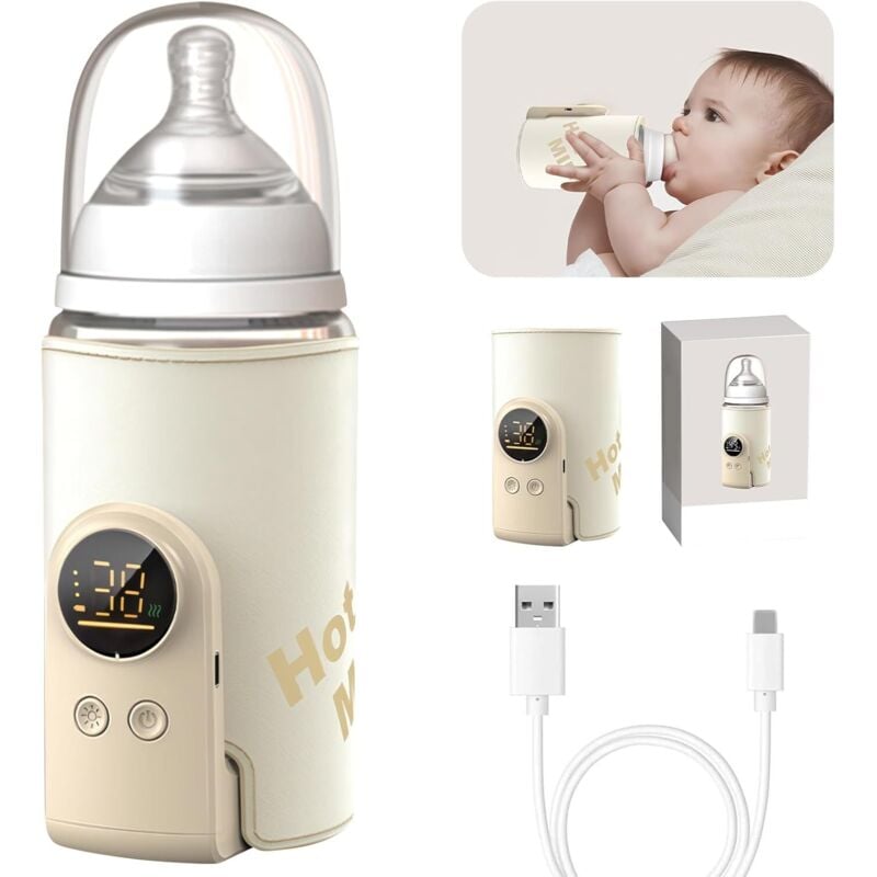 Chauffe-biberon portable pour bébé, avec écran LED, chauffage rapide et chaud 48 h, 6 températures réglables, chauffe-biberon USB, pour la maison et