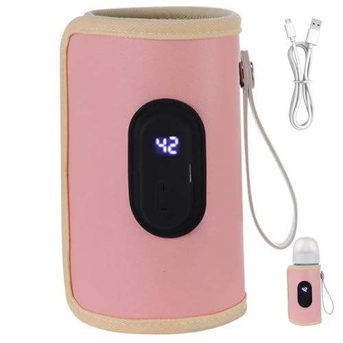 TOPINCN Chauffe-biberon de Lait pour bébé 5 Vitesses Chauffe-biberon Portable Garde-Chaleur de Lait pour bébé avec Affichage LED Chauffe-biberon USB pour Voyage en Voiture (Rose)