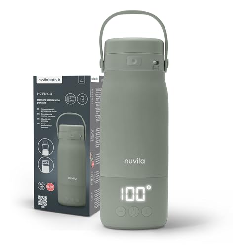 Nuvita 1190 Chauffe Biberon 500 ml – Chauffe-biberon sans fil avec batterie rechargeable, 3 températures sélectionnables 37 °C/55 °C/100 °C, maintient au chaud jusqu'à 12 heures