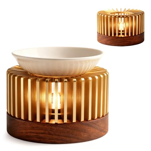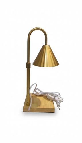 NOVAGO Chauffe-Bougie en Métal Doré avec Abat-Jour Conique – Design avec Base en Bois, Chauffe-Cire sans Flamme, Idéale pour Bougies Parfumées, Salon et Chambre