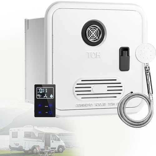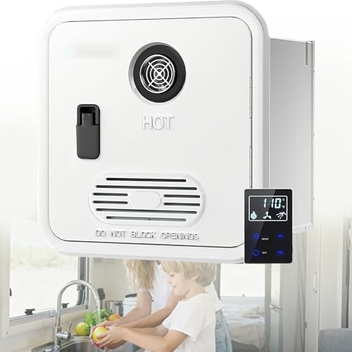 KPOUYYDS Chauffe-Eau instantané pour Camping-Car Chauffe-Eau instantané 55 000 BTU, idéal pour Les Camping-Cars. Porte Blanche de 40,5 x 40,5 cm (15,94 x 15,94 Pouces), télécommande, 12 V CC. 10L