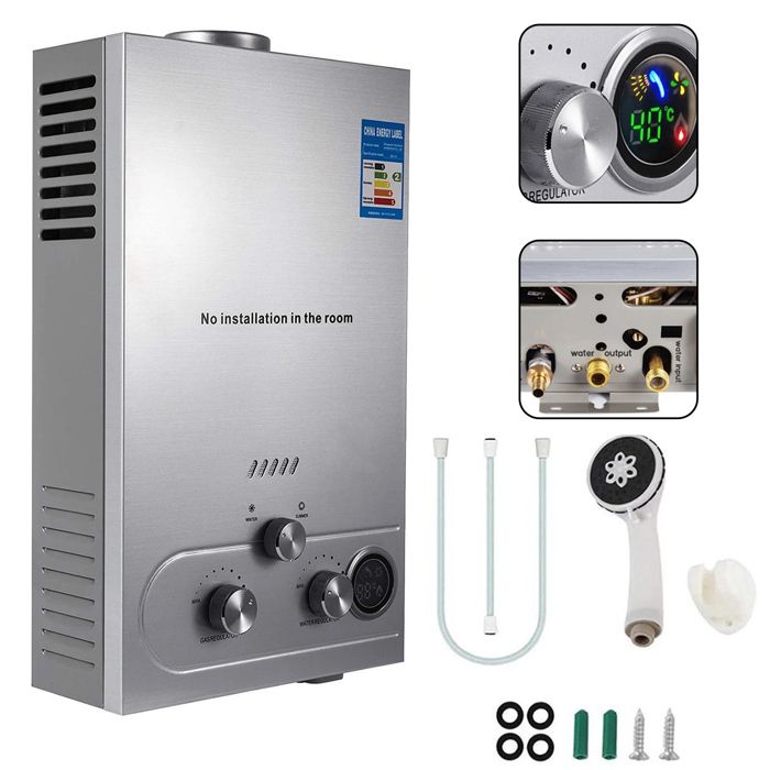Chauffe-eau au gaz de pétrole liquéfié au Propane, 10/16/20l, Kit de chaudière en acier inoxydable pour l'extérieur, la maison et le Camping