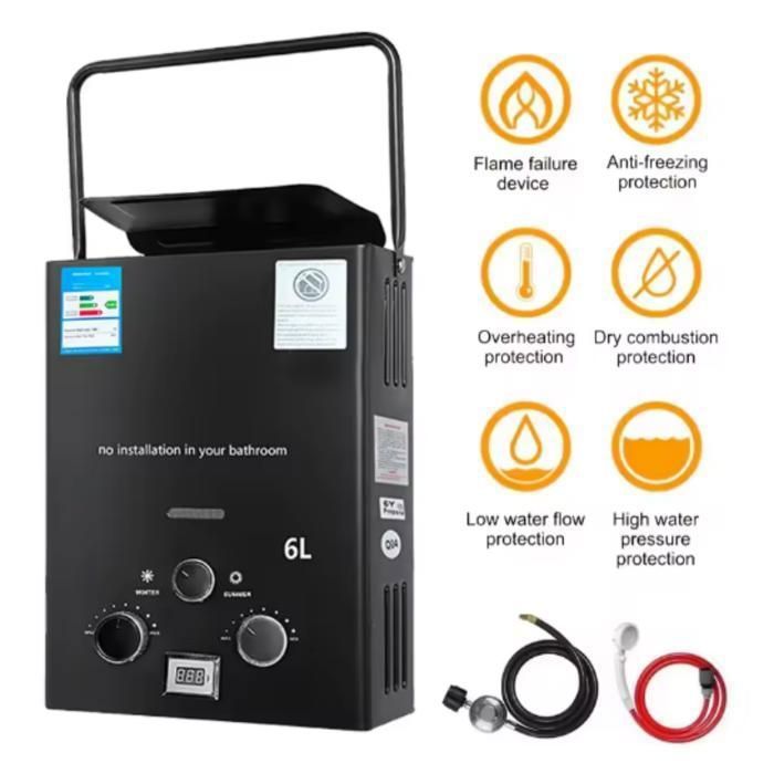 Chauffe-eau à gaz GPL 6L chaudière à Propane sans réservoir en acier inoxydable avec Kit de douche appareil de Camping domestique