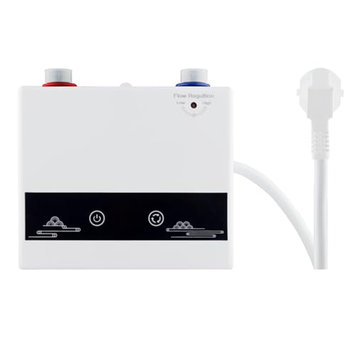 Billg Chauffe Eau Électrique 6500KW Chauffe Eau Instantané Électrique Réglable 25-80°C Chauffe-Eau Instantané IPX4 Étanche Mini Chauffe Eau sous Evier 13 * 7.6 * 24cm