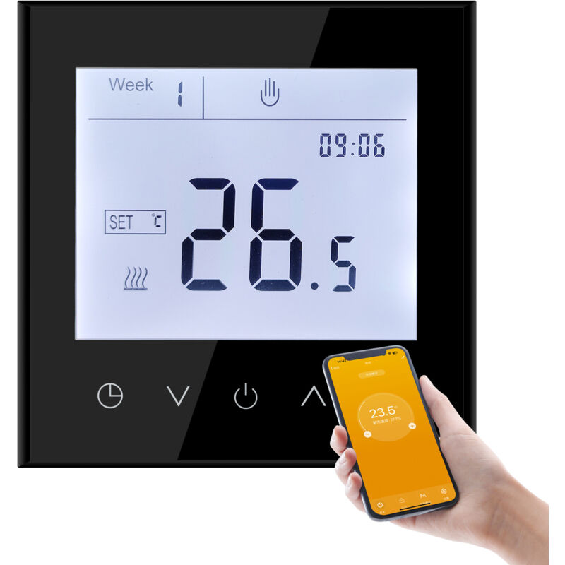 Thermostat intelligent WiFi programmable semaine,thermostat connecté, commande bouton/application/vocale, compatible Google Home, chauffe-eau 5A 24V