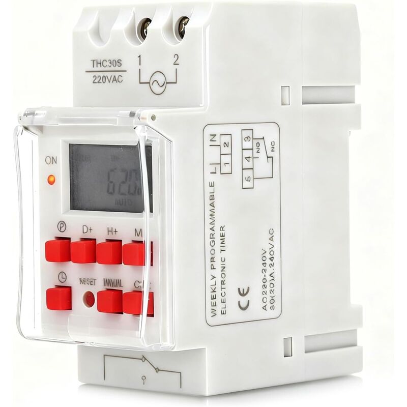 Programmateur Électrique pour Chauffe Eau et Piscine, Minuterie Numérique 30A avec Affichage LCD, 1s-168h Programmable, 20 Cycles Marche/Arrêt, Montage Rail DIN 35mm