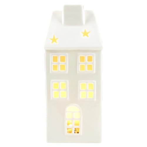 Decoration Noel Village de Noel,Maison Porcelaine Noel Mini Lumineux LED à Pile Maison en Porcelaine Mate avec Pied pour Bougie Chauffe Plat,Maison Blanche Ceramique de Noel,Décoration de Bureau (03)