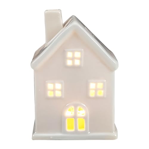 Decoration Noel Village de Noel,Maison Porcelaine Noel Mini Lumineux LED à Pile Maison en Porcelaine Mate avec Pied pour Bougie Chauffe Plat,Maison Blanche Ceramique de Noel,Décoration de Bureau (01)