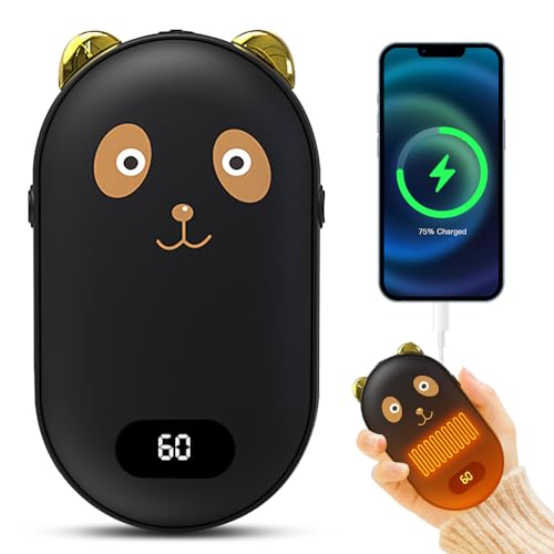Chauffe-Mains Rechargeable 10000mAh, Réutilisable Électriques Portables USB Power Bank, Chauffe Mains Split-Magnétique 2 en 1, Batterie pour iPhone, Urgence, Chaufferette pour Hommes (Noir)