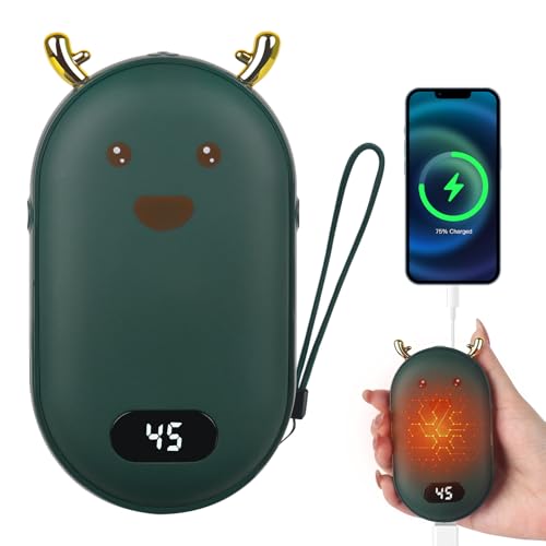 HIULLEN Chauffe Main Rechargeable, 5000mAh Chaufferette Main Reutilisable avec 2 Modes de Chauffage Chauffe-Mains Électrique Banque d'alimentation Électrique Portable pour Femmes Hommes(Vert)