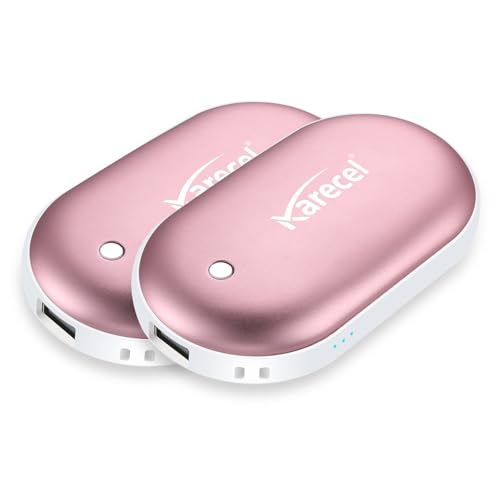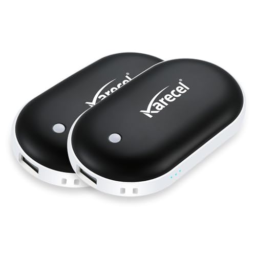 Karecel Chauffe Main Rechargeable Lot de 2, 10400mAh Chaufferette Électrique Reutilisable Double Face, Chauffe-Mains Power Bank USB pour l'extérieur en Hiver, Idéal Ski, Chasse, Raynauds, Cadeau Homme