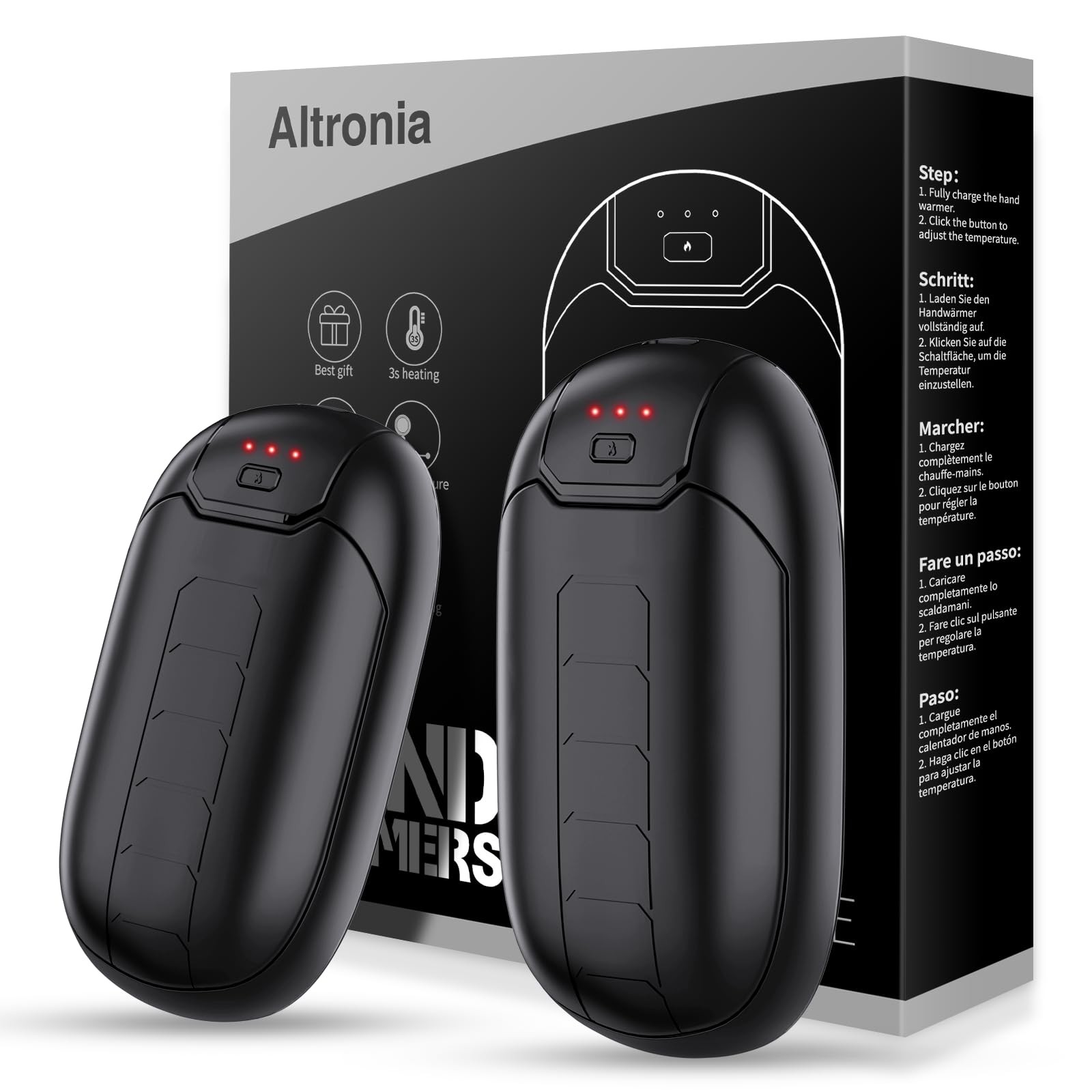 Altronia Chauffe-Mains Rechargeable, 6000mAh Chaufferette Électrique Portable Réutilisable, Niveau 3, Température 35-55°C, Durée 5-7 Heures, Chauffe-Mains USB pour Reno, Outdoor, Camping