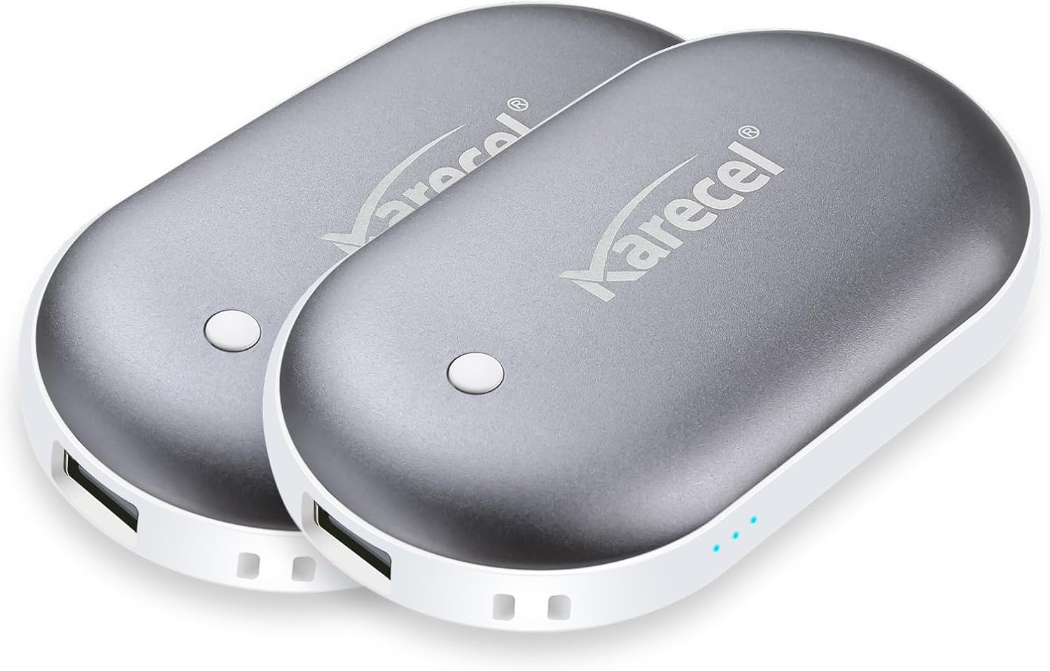 Karecel Chaufferette Main Rechargeable Silicone Thermoconducteur Lot de 2, 10000mAh Chauffe Main Électrique Main de Poche Reutilisable Double Face, Chauffe-Mains Chauffage Double Face à 360°, Léger
