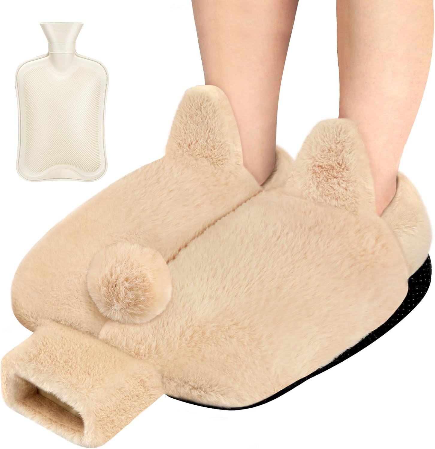 AFXXE Chauffe Pieds Non électrique, Chausson Chauffant Pour Femme et Homme, 36x30cm Chaufferette Pieds Reutilisable Pour l'hiver, 2L Bouillotte Pied Lavable,Warm Bouillotte Eau Chaude(Beige)