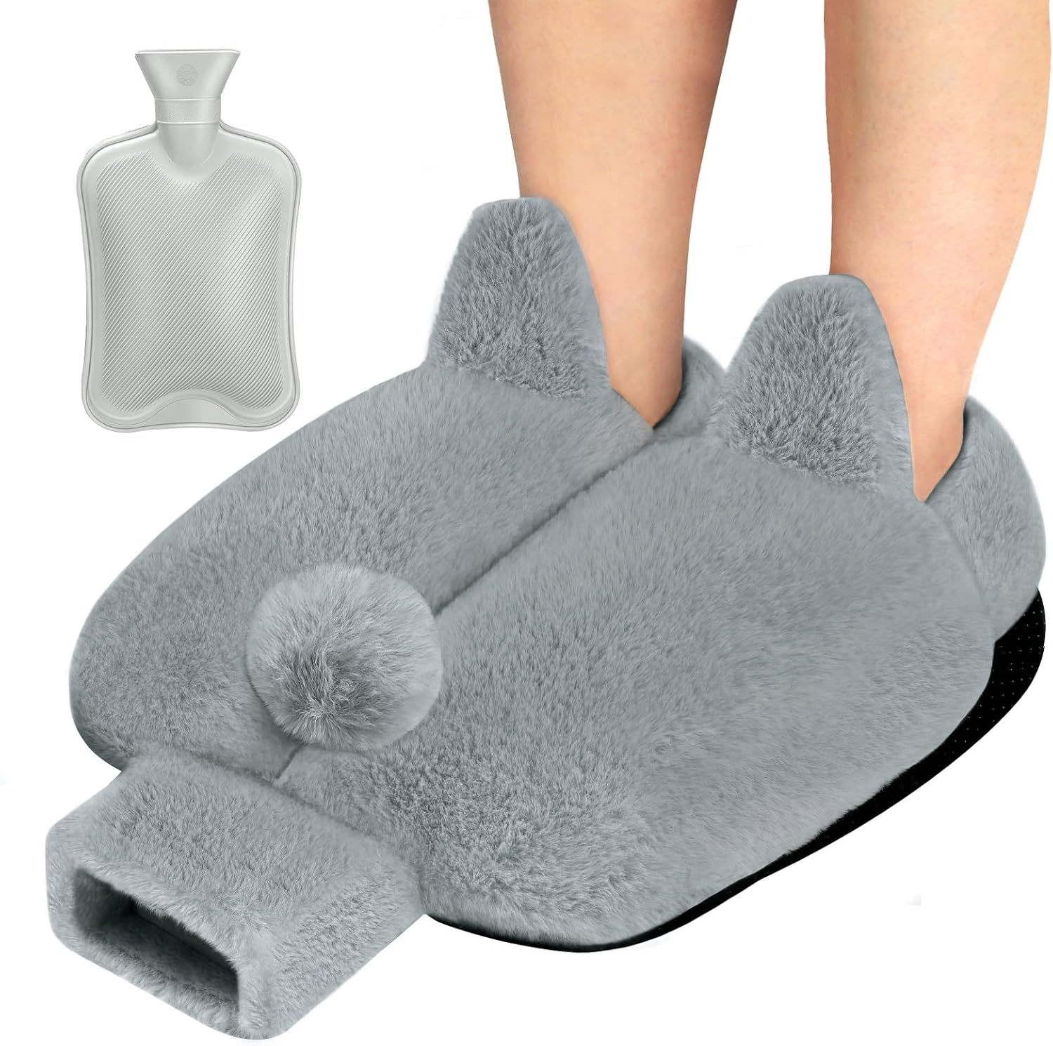 Tgkoddo Chauffe Pied, 2L Bouillottes Peluche Non électrique, Chaufferette Pieds Reutilisable Lavable et Amovible, 36x30cm Chausson Chauffant pour Les Pieds, Convient aux Femme Homme (Gris)