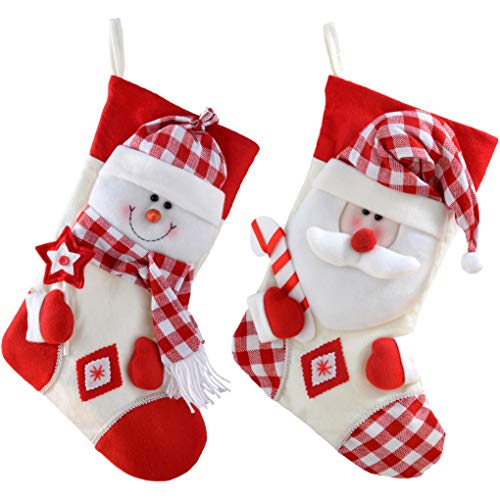 WeRChristmas Bonhomme de Neige Père Noël Chaussette, Blanc et Rouge Tartan, 49 cm