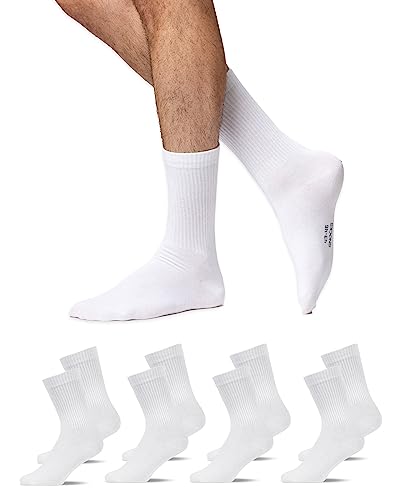 Snocks Chaussette Hommes Sport (Lot de 4) Tennis (4x Blanc, 47-50) Chaussette Hommes Blanche Coton Cushion Crew Chaussettes de Tennis Haute Blanche