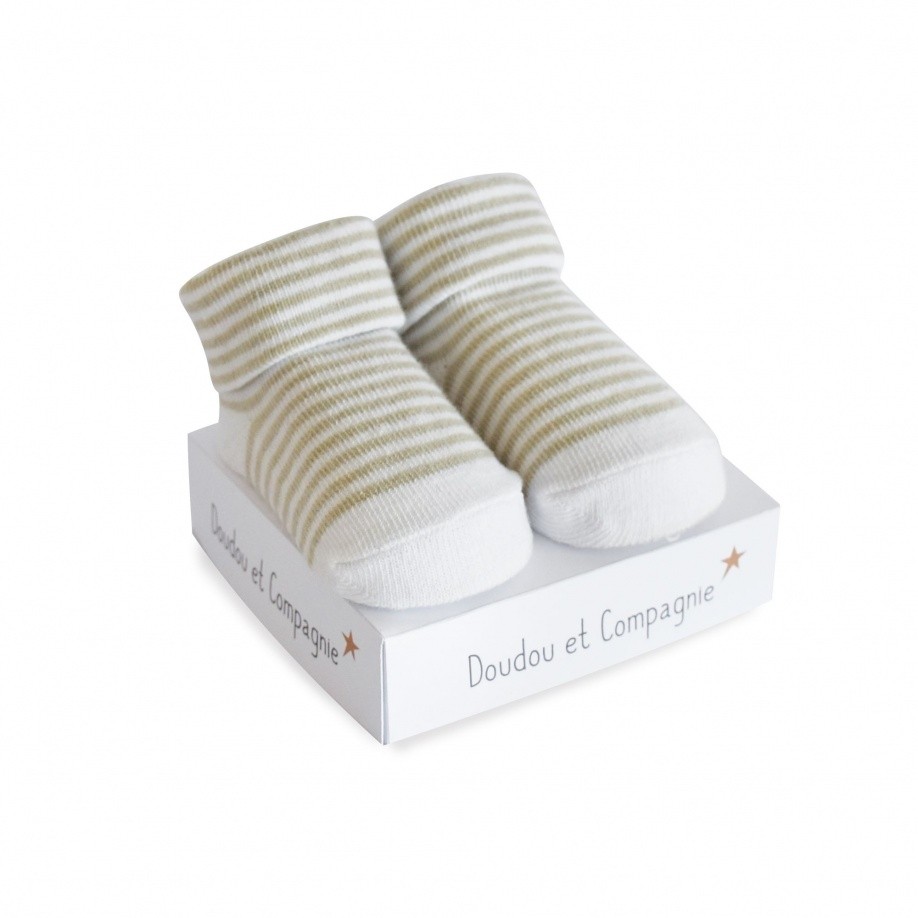 DOUDOU ET COMPAGNIE, Chaussette de naissance - Blanche avec rayures Taupe, DC...
