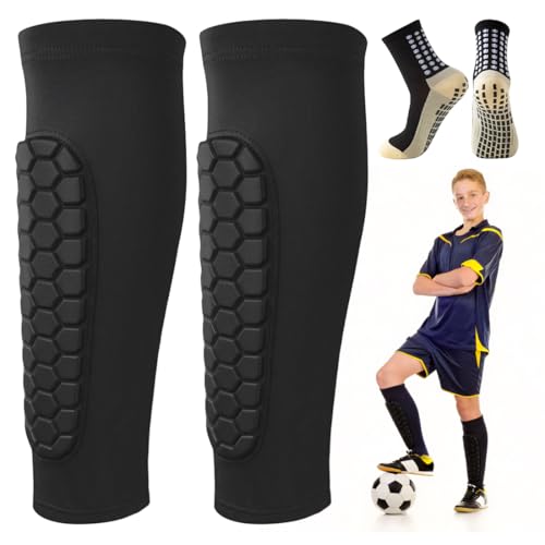TTPSRY 1 Paire Protege Tibia Foot Chaussette Antidérapante Foot Coussinets en nid d'abeille pour Protège Tibias à Manchon de Compression pour Jeux de Football Courir(M)