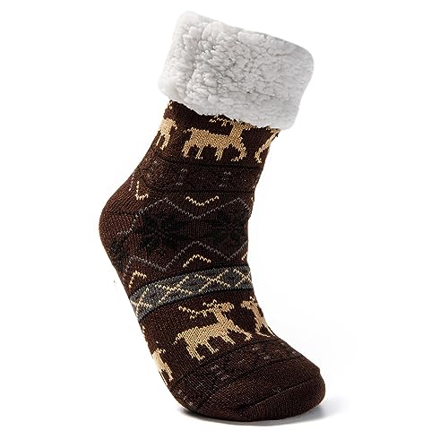 JOMIX Chaussettes Antiderapantes Homme Chaussons Chaussettes Homme Chaussette Antiderapante d'hiver épaisses et Chaudes pour Hommes Noël Cadeau (Marron, 39_46)